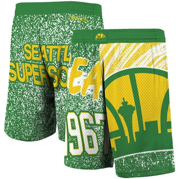 Men S Mitchell Ness Green Seattle Supersonics Hardwood Classics Jumbotron Sublimated Shorts Walmart Com